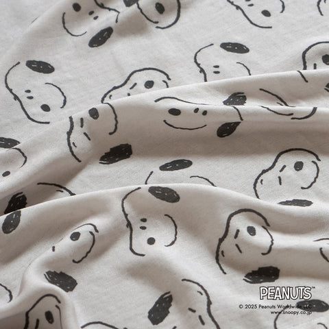 ・スヌーピーの顔が散りばめられた、シンプルなモノトーンのデザイン。ユニセックスでお使い頂けます。