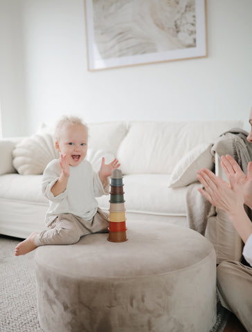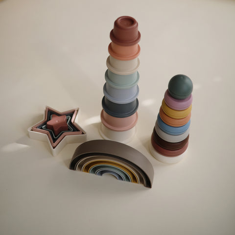 カラフルなタワーは赤ちゃんが見ていて楽しく、積み上げたり、重ねたり、遊びながら整理整頓能力や運動能力や手先の器用さを身につける効果が期待できます。 水遊びや砂遊びにも使用できるので屋内外問わず遊ぶことができます。
