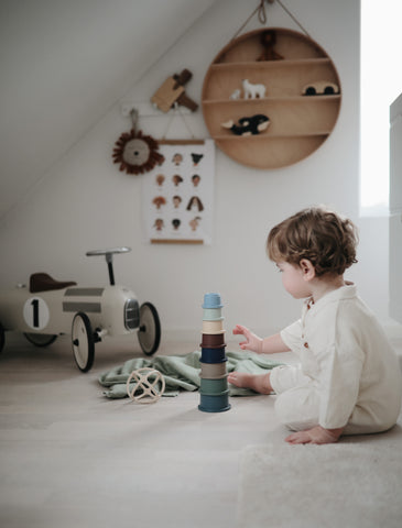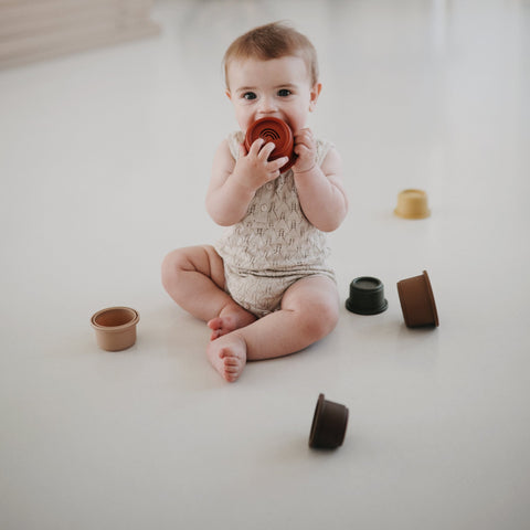 スウェーデンでデザインされたmushieのベビーグッズたちは、北欧らしいシンプルなデザインと落ち着いたくすみカラーが人気です。