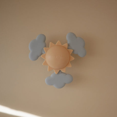 遊び心のあるデザインと落ち着いた色合いが特徴のサクション スピナー トイ。