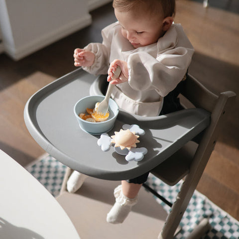 また丈夫な吸盤がスピナーをしっかりと固定し、誤って落とすのを防ぎます。ハイチェア、キャビネットの扉、飛行機のトレイ、バスタブなどに吸着させれば、お家でも外出先でも夢中になって遊んでいただけます。