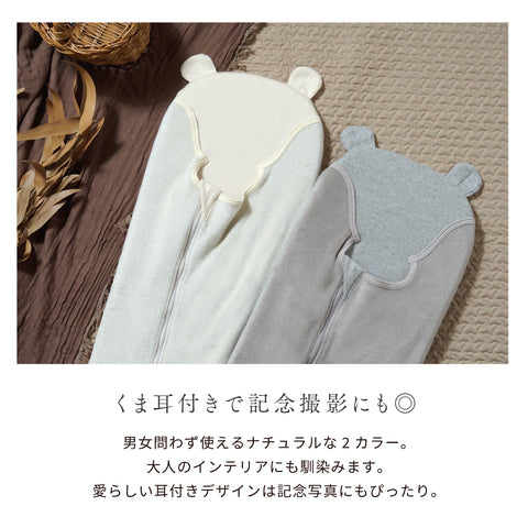 ・赤ちゃんを抱っこしたときも、寝ているときも、「くま」に変身できます。写真を撮りたくなるおくるみです。