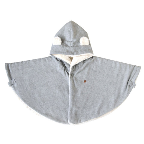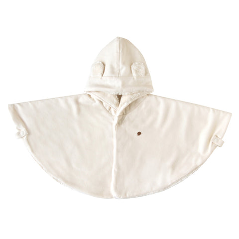 ・フードをかぶればベビーの頭までぽかぽかになり、片方の面は耳つきになっています。