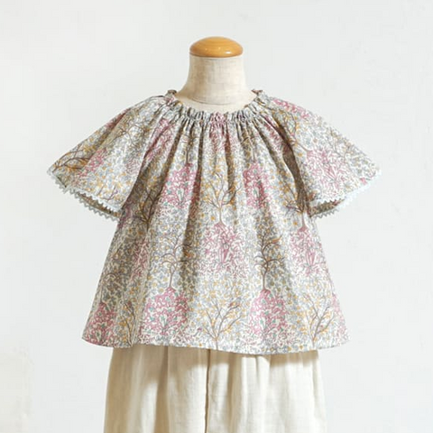 ・フレアに広がる袖にはレースを付け、よりフェミニンで上品なブラウスに仕上げています。