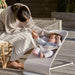 生後1ヶ月ごろから2歳まで、バウンサーとチェア、2通りでお使いいただけます。チェアとして使用する際には、バウンサーの布地を裏返すだけでOK。赤ちゃんを包み込む立体デザインなので、どんな時期でも快適な座り心地です。