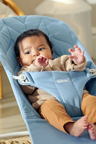 赤ちゃんの動きに合わせて、やさしく揺れてあやしてくれるベビービョルンのバウンサー「Bliss(ブリス)」。