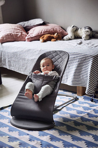 赤ちゃんの動きに合わせて、やさしく揺れてあやしてくれるベビービョルンのバウンサー「Bliss(ブリス)」。
