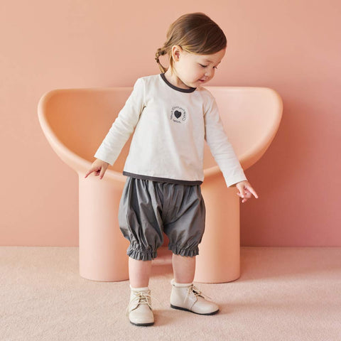 ・ボディやロンパースに重ねたり、トップスに合わせたりと色々な組み合わせが楽しめて、小さいうちは長めのブルマとして、成長しても短めのブルマとして長くお使いいただけます。