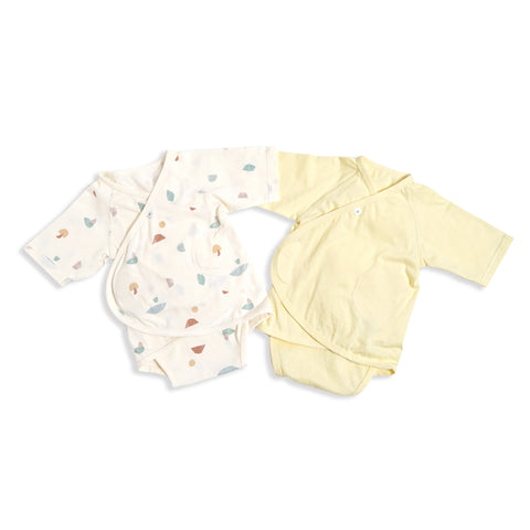 パッとサッと簡単にお着替えができる肌着の2点セット(キャラメル ・プリント柄)