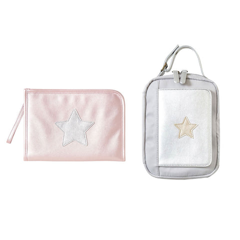 おむつとおしりふきをまとめて持ち歩けるポーチと、母子手帳ケースの人気おでかけセット。