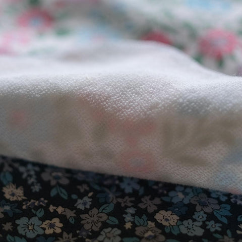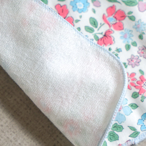 柄面は滑らかな肌触りのリバティーのタナローン生地、裏面は吸水性の良いパイル生地を組み合わせたハンカチタオルです。