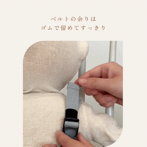 3. ショルダーベルトの余り部分を重ねゴムでスッキリ