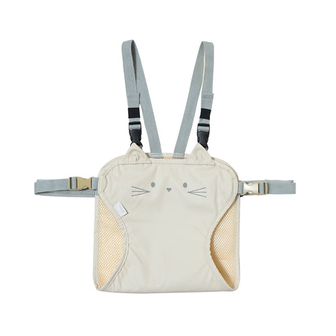 外食時や帰省先などで活躍するねこさんのお顔の補助椅子ベルト。