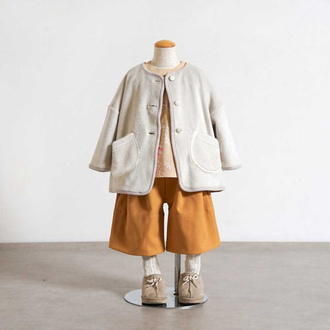 ・まあるいポケットやボタンに柄生地をポイント使いしています。
