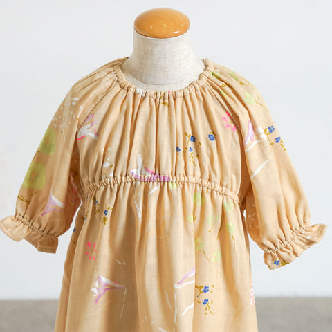 ふんわりとやさしい柄のダブルガーゼの生地で仕上げたワンピース。