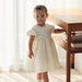 ふんわりと広がるスカートと丸みのある袖が優雅なシルエットを描くワンピース。