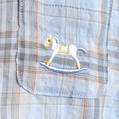 ・胸元のポケットには木馬の刺繍を入れポイントに。