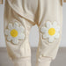 ・今期はぽこぽこした立体感のあるお花柄のサガラ刺繍ワッペンを両膝に膝パッチのように付けてポイントにしています。