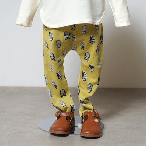 ・色々なフクロウ達が編み込まれている総柄レギンス。