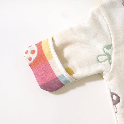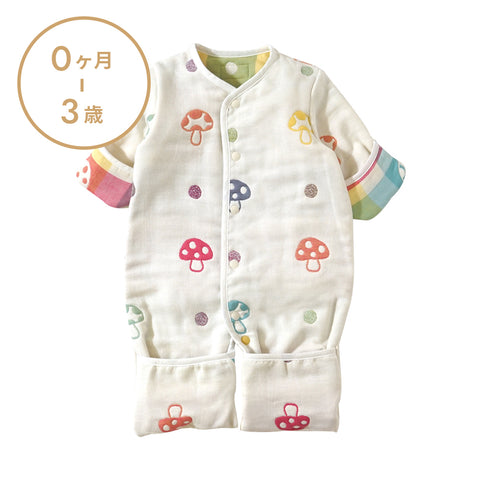 さらに袖が捲れるので長袖・半袖と2wayで使えます。袖2通り×足元3通りで6通りもの使い方ができるスリーパーです。