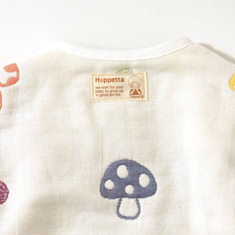 ふくふくガーゼは愛知県三河地方で通常の何倍も時間をかけてゆっくりと織られています。6枚の重ねられたガーゼはそれぞれ違った織り方や密度でつくられ、洗うほどにやわらか。多くのお客様が「ほかの6重ガーゼと全く違う」と驚かれます。赤ちゃんの快適な眠りを願って作られた特別なガーゼです。