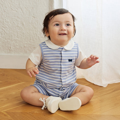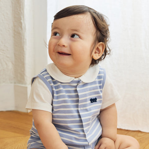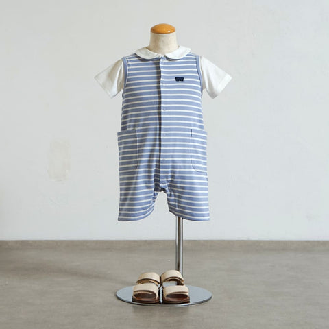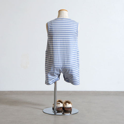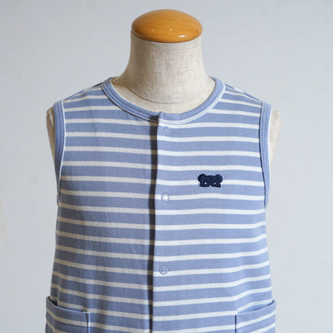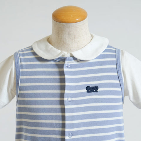 ベアマスクボーダーロンパース ライトブルー 70・80cm