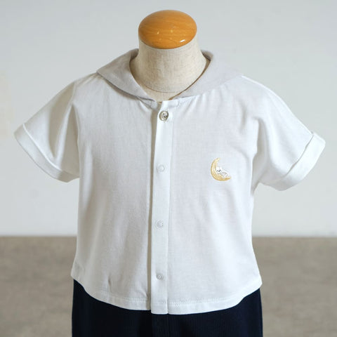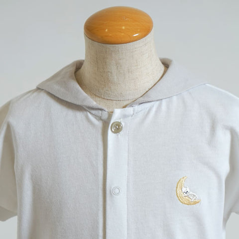 ・胸元には三日月にくまが寝ている刺繍を入れています。