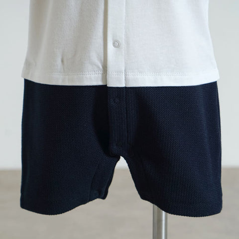・配色のセーラー襟のトップスとショートパンツを合わせたセパレート風のデザイン。