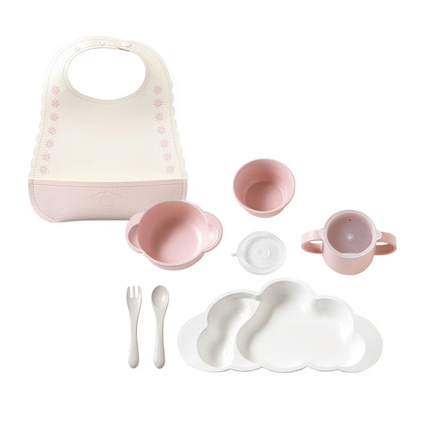 (くもプレート/みみ付きスープわん/おちゃわん/コップ/スープわん/ストッパー/フォーク・スプーンの7点)