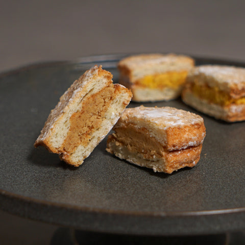 キャラメルの風味豊かなクリームをサンドしたダックワーズ。