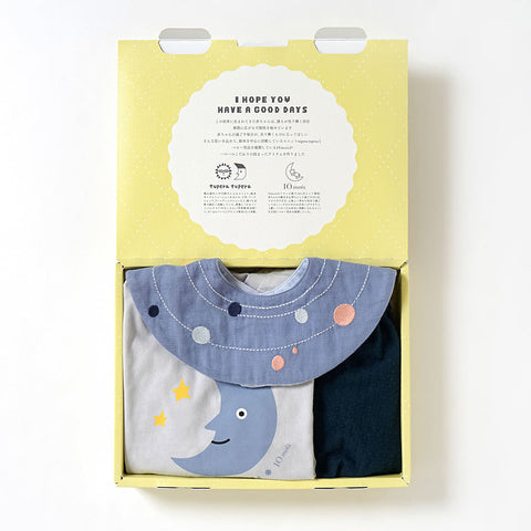 ・Wガーゼのスタイの表側は惑星をイメージした刺繍、裏側はワンポイントの帽子の刺繍が施してあります。
