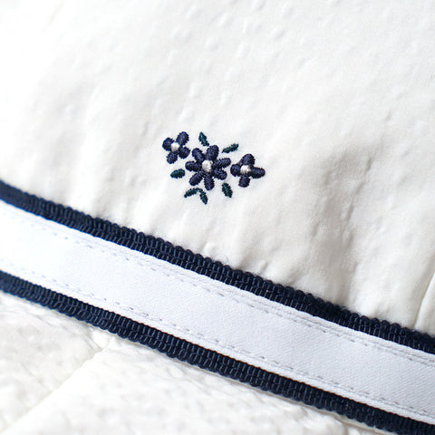 他のお受験アイテムとおそろいのお花の刺繍入り。統一感のあるコーディネートに。