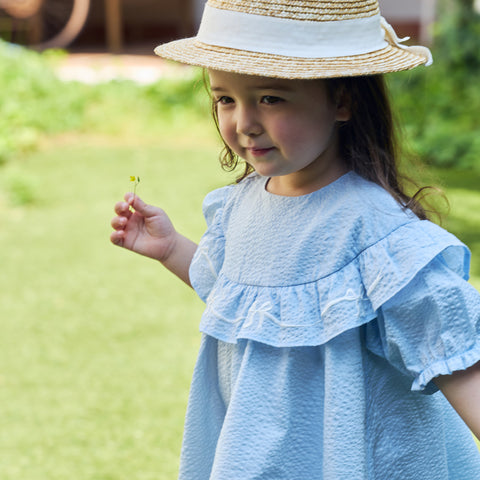大きなリボンがポイントの麦わら帽子。