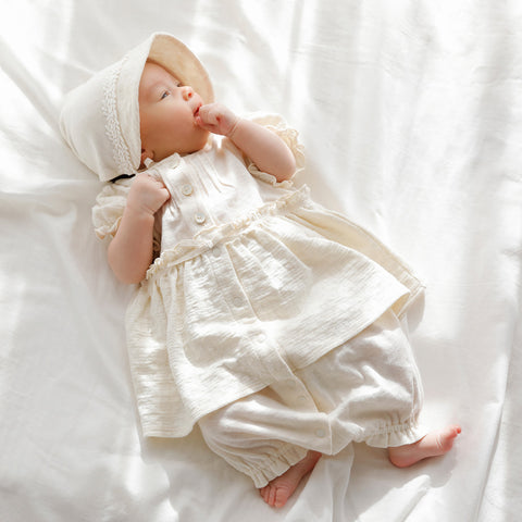 ・flowerジャガード2wayドレスにお揃いで付けられるボンネット