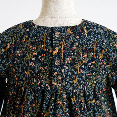 ・forest柄のテキスタイルを使用した総柄チュニック。