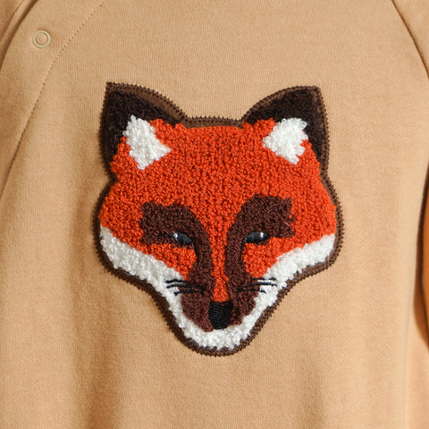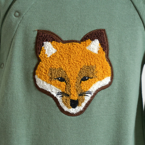 きつねワッペン裏毛ロンパース モスグリーン 70・80cm