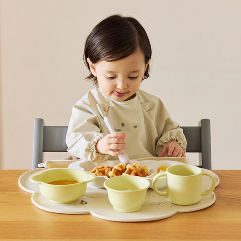 | 素材 | 竹粉配合バイオマスプラスチック (抗菌効果・抗ウイルス・防腐効果) コップトレーニングふた、スープわん・おちゃわんストッパー:ソフトエラストマー |