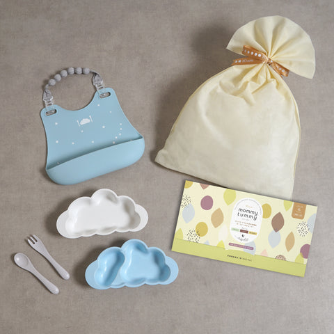 ベビーには離乳食食器セット、ママへは体に優しいスムージーをセットにしました。