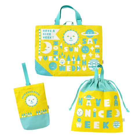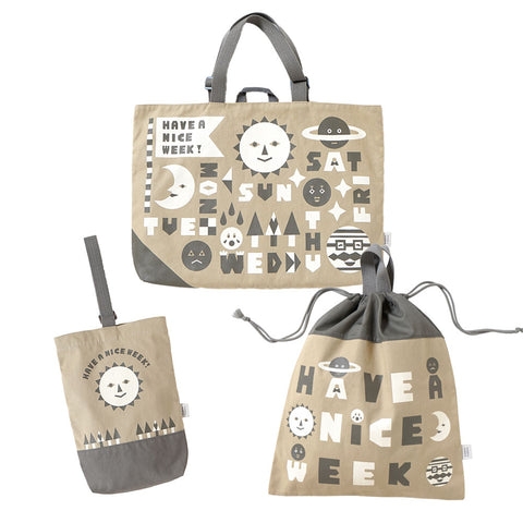 tupera tuperaと10moisのコラボレーションアイテム。レッスントート・シューズケース・巾着袋の入園バッグ3点セット。