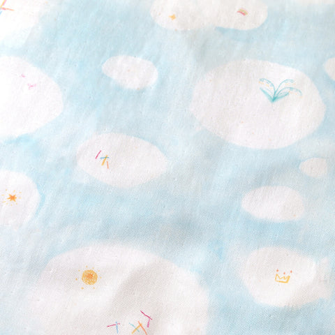 綿のやわらかさを最大限に引き出し、できる限りあまく織り上げた"わたガーゼ"を使用した生地をつかっています。