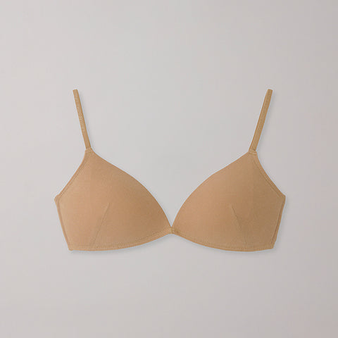 身体のナチュラルな曲線を引き立ててくれる、シンプルなカッティングのモールドカップタイプのノンワイヤーブラ。