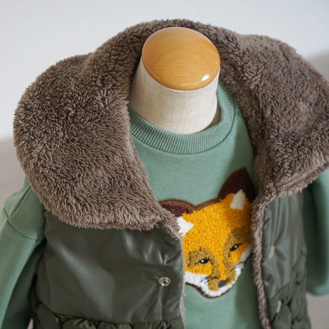 リバーシブルぽこぽこベスト カーキ 70-90cm・90-110cm