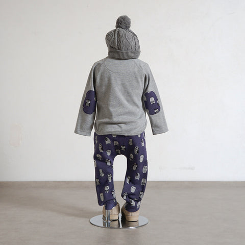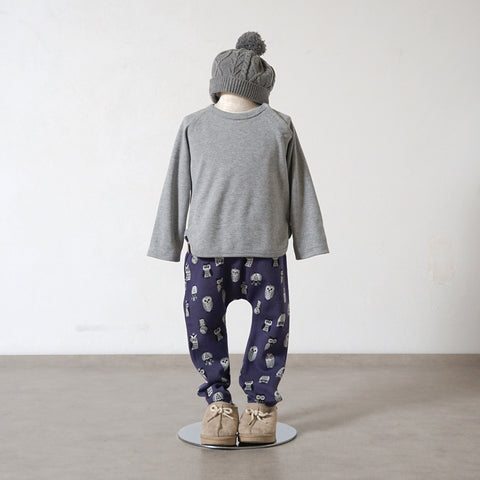 フクロウ肘パッチ長袖Tシャツ グレー 80・90・100・110cm
