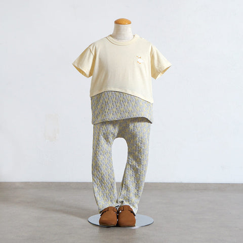 ・同じ生地を部分使いしているアヒル刺繍Tシャツとのセットアップもおすすめです。