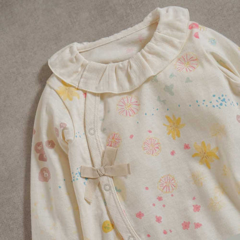 ・新生児からはおむつ替えが楽なドレス型で、足の動きが活発になったらカバーオール型に変えて使えます。