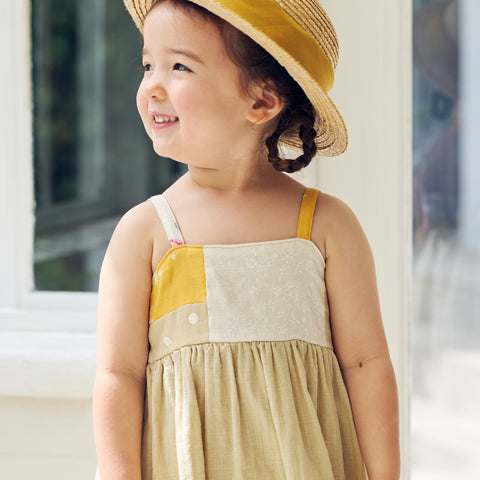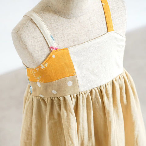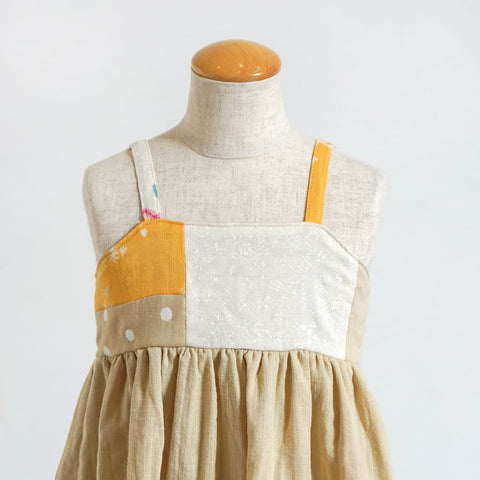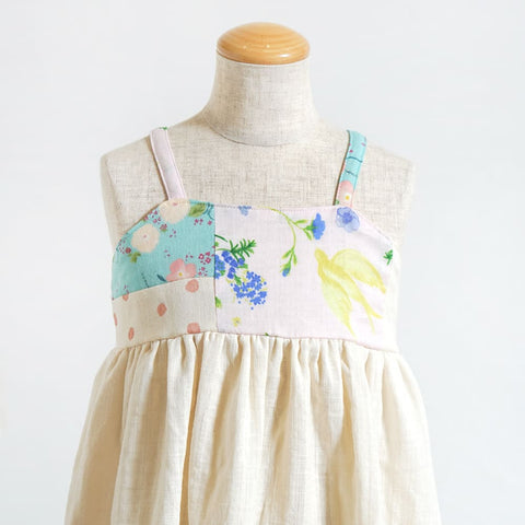 パッチワークが華やかなワンピース。