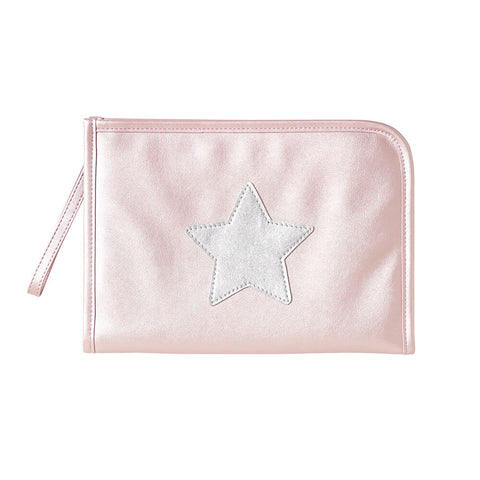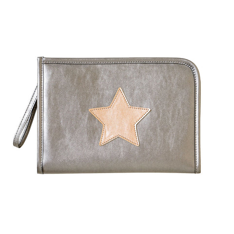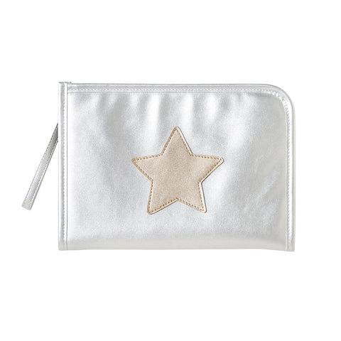 シルバーの生地に星のアップリケがポイントの母子手帳ケース。