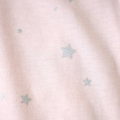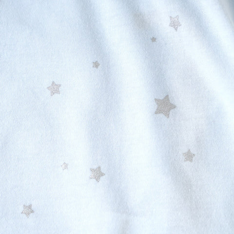 小さなシルバーの星を散りばめたシンプルなデザイン。ブルーとピンクの2色展開で、同素材・柄の短肌着もあります。