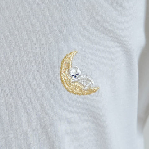 ・胸元には三日月にくまが寝ている刺繍を入れています。