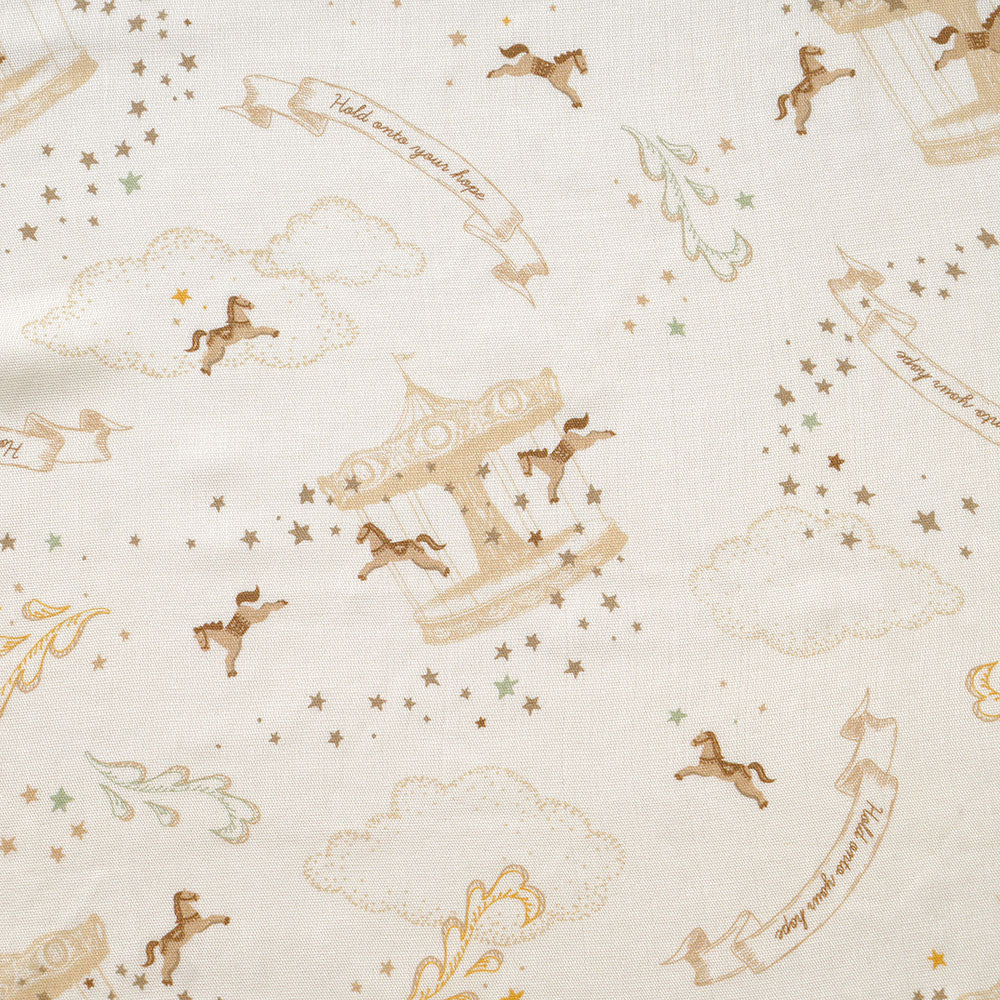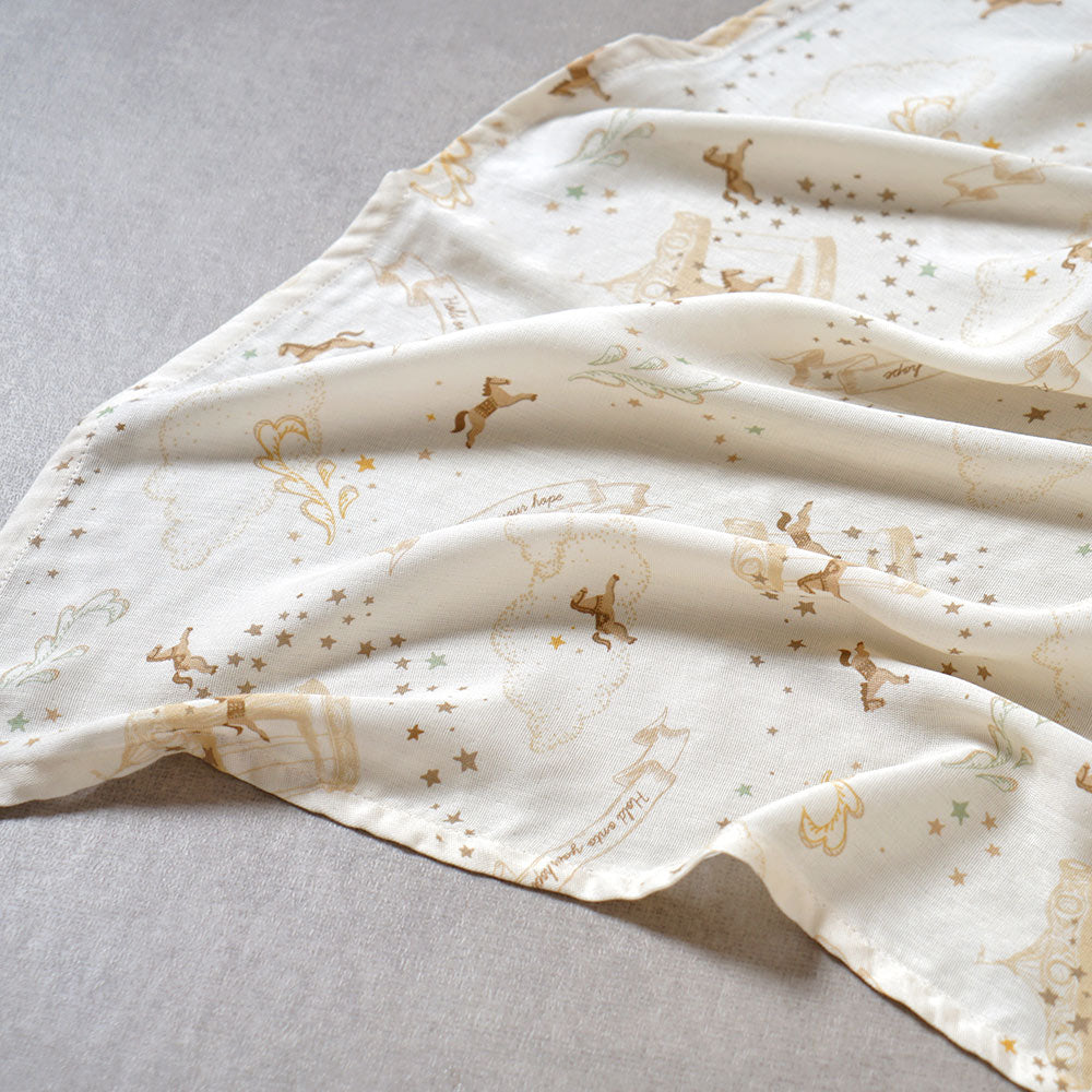 ・メリーゴーランドをイメージした落ち着いた色合いのおくるみ。